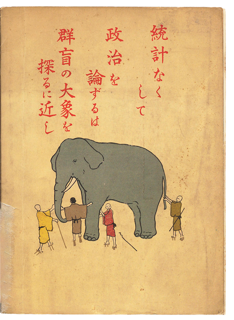 The back cover of Saga Prefecture Statistics Collection from 1929 features the parable of the blind men and an elephant. What a beautiful metaphor for a bunch of charts.