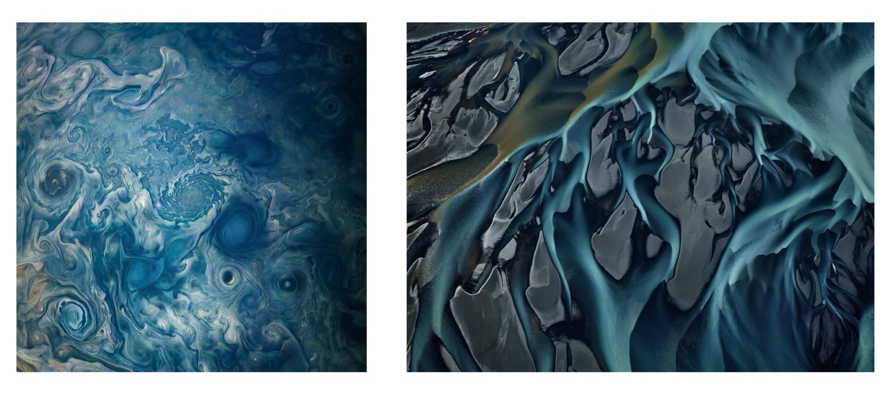 NASA Juno, Jupiter | Edward Burtynsky, Thjorsá River #1 Iceland (2012)