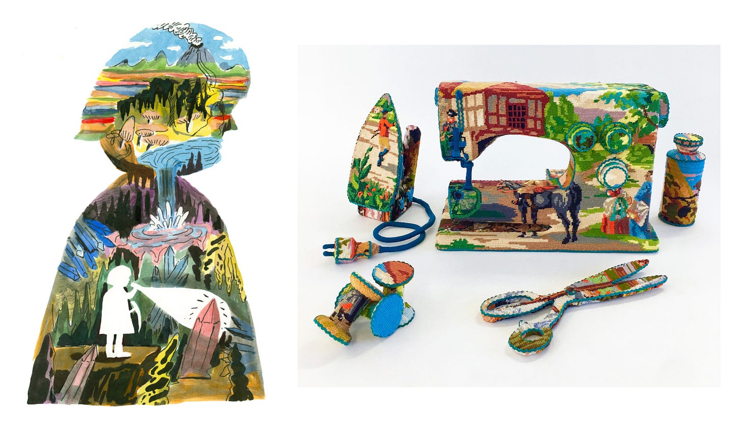 Today’s pairings range from oceans to neon, moth wings to eclipses, stitched objects to impossible forests. A fun adventure in seeing more.