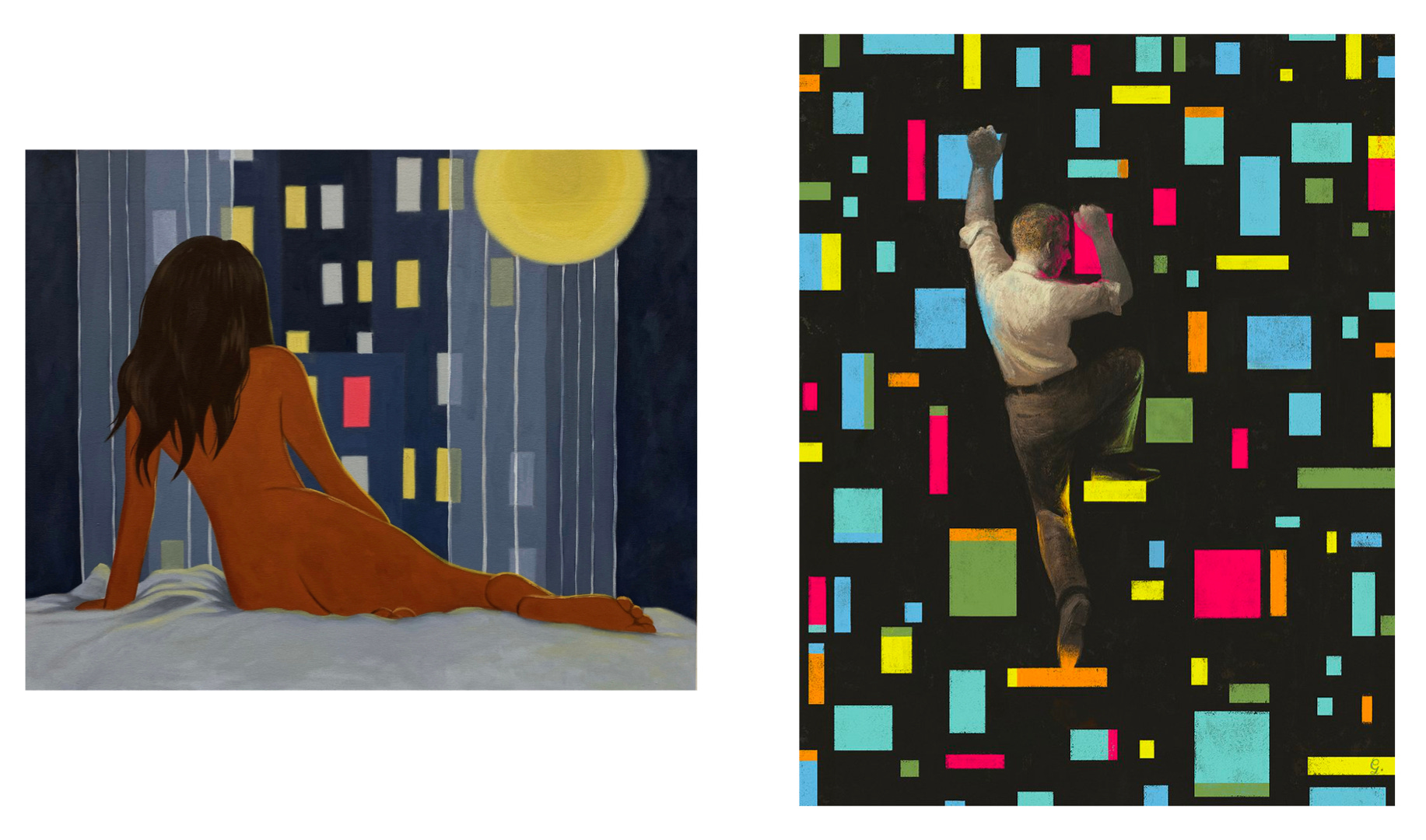 Melody Tuttle, Nocturne in Blue and Orange (2022) | Gerard DuBois, Sisyphus (2021)