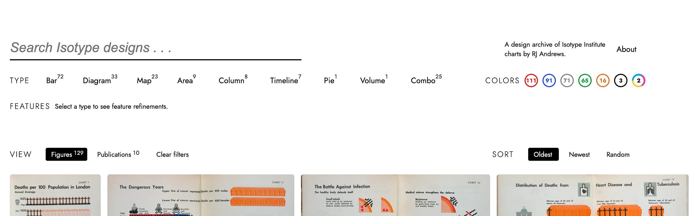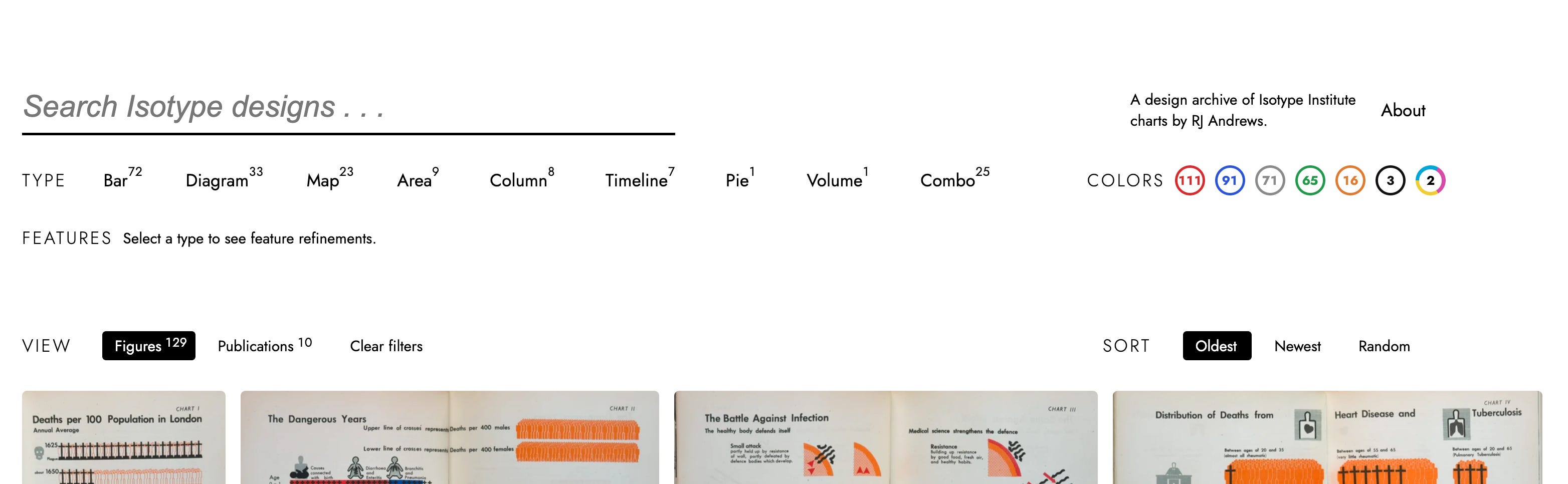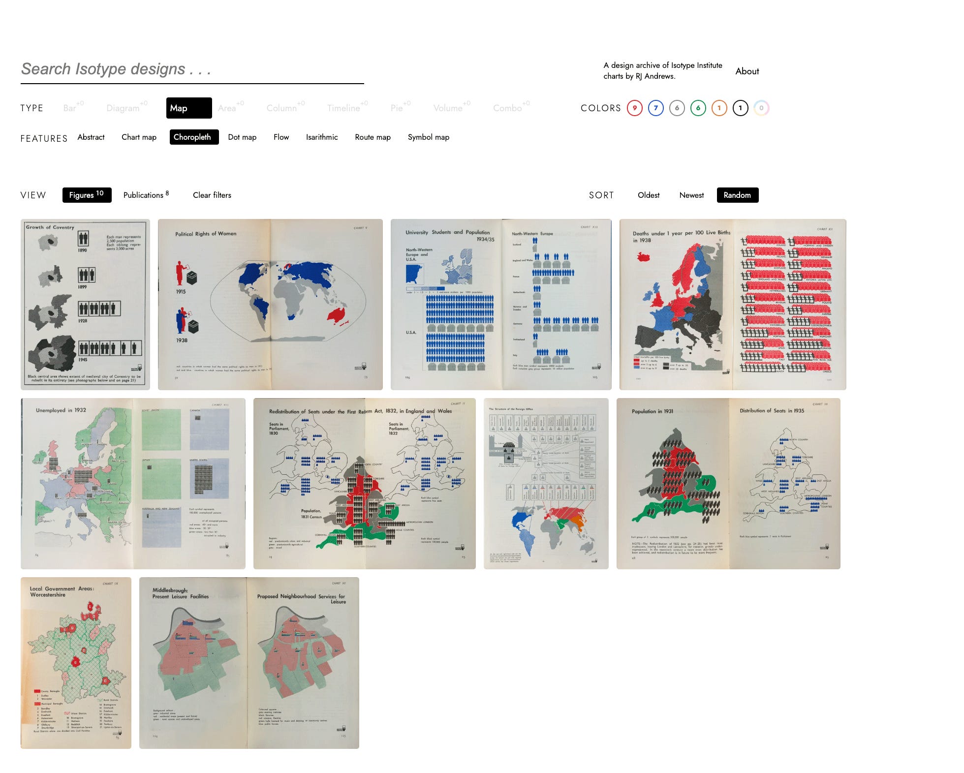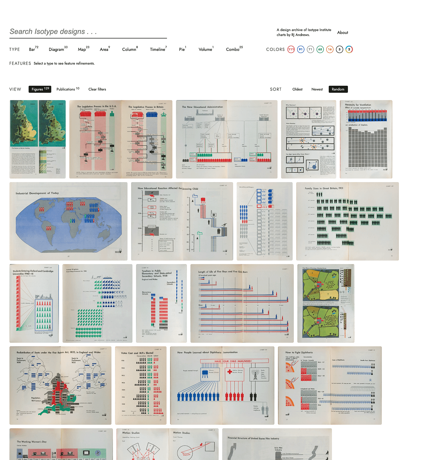 Isotype Explorer has a few neat views. The grid view is great for discovery. Here it is with random sort, which creates unexpected juxtapositions.