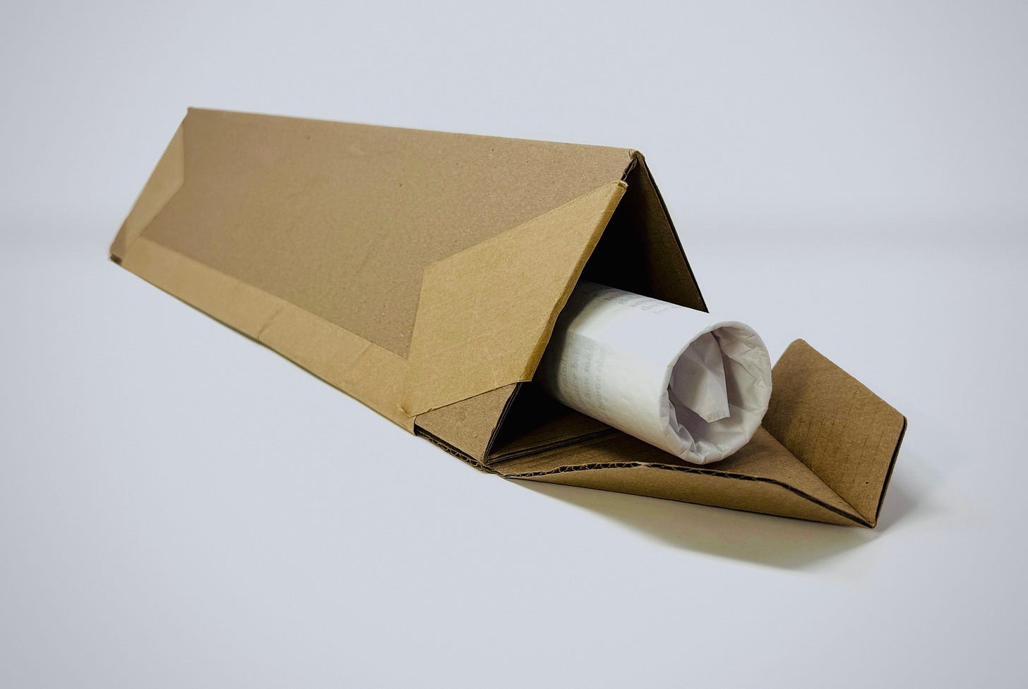 Posters are rolled in protective tissue and shipped in a triangular carton, which means they arrive ready to gift: no creases and no tube wrestling