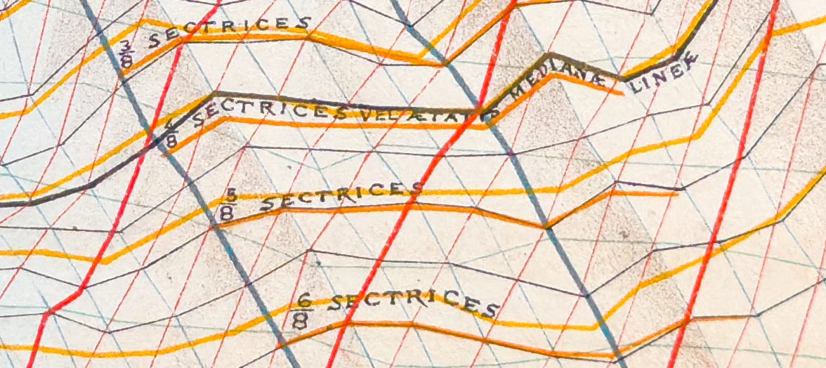 🟥 Red is years, from 1750 (left) to 1875 (right). Every 25 years gets a thick line.